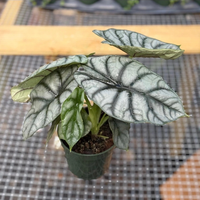 The Alocasia Silver Dragon Scale, also known as the Silver Dragon Scale Alocasia, is an Easy Care Tropical House Plant Perfect for any Indoor space. These Alocasia Corm Plants are all FULLY Rooted in a 4" Pot, Air Purifying and with well Developed Foliage, Make a Great Plant Gift.